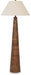Clean, contemporary style can be sleek and shiny—or subtle and earthy. We love how this lamp falls into the latter category. Pairing a stylish shade with a wood base bathed in a honey brown finish, it has a delightfully different yet simply illuminating look. It's the perfect accent when staged in the living area or TV room.