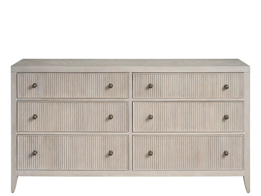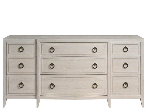 Universal FurnitureThe Avaline Dresser, a study in refined elegance, offers ample storage with nine spacious drawers. The top center drawer, lined with gray felt, pro...