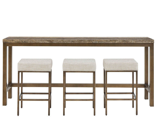 Universal FurnitureThe Brindle Console with Stools creates a sophisticated entertaining ensemble, combining a dramatic console with three coordinating stools. The stu...