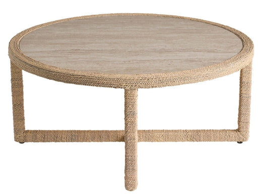 Universal FurnitureThe Abaca Cocktail Table is wrapped in natural abaca fiber with a Travertine Beige stone top, bringing organic texture and sophisticated materials ...