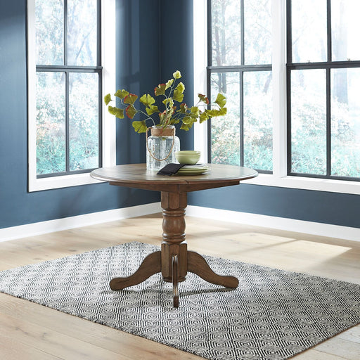 Liberty FurnitureThis Carolina Crossing Pedestal Table is distressed, yet current. Consisting of an antique finish with heavy distressing, this table design transla...