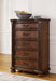 Take inspiration from the traditional luxury of this chest of drawers. Classic with a rich cherry brown finish, its stately presence graces your room with an air of opulence. Your taste for exquisite details is satisfied with decorative drawer pulls and chic bun feet. With five drawers acting as elegant hosts for clothes and other essentials, your restful retreat has never been so refined.