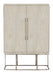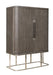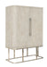 Architectural and timeless with a luxe mixture of materials, the Modern Mood Wardrobe is a statement piece. The shaped metal base gives the cabinet a floating appearance. Crafted with Oak Veneers, the wardrobe is finished in a serene Diamond color and has two large wood doors with piano hinges and mirror glass on the back of the right-side door. Behind the right-side doors are two adjustable shelves. Features include six self-closing drawers, a removable clothing rod and jewelry storage behind the left-side doors that includes 26 hooks, three felt-lined trays and one removable drop-in jewelry tray with four padded rows for rings.