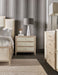 Make a grand statement with this panel bed, designed with graceful tiers of soft fabric and a polished limestone oak veneer frame. Ideal for spacious primary suites.