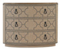 Vintage and tactile with a chic flair, the Big Sky Three-Drawer Chest combines a Pecky Hickory Veneer solid-wood-edged top in a Vintage Natural finish revealing the authentic knots and wood grain with a burlap-wrapped case accented by a patterned nailhead design. With three self-closing drawers, the top drawer has a removable felt liner and the bottom drawer is cedar-lined.