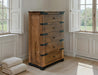 5 Drawer Chest. The exceptional Parota collection features a top crafted from Parota wood, a species native to Mexico and South America. This outstanding collection is lightly hand-distressed and incorporates metal details for added elegance.