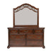 Messina Estates traditional design exudes luxury of European styling. Impressive in scale and rich in details such as scrolled metal accents, antique brass bail hardware, and acanthus leaf carvings. Finished in a rich cognac with gold tipped highlights on carvings.