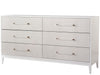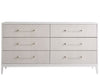 A light and airy addition to any bedroom, the Brentwood Dresser features Alabaster finished drawer fronts with champagne and acrylic bar hardware, six spacious drawers, and a gleaming white lacquer case.
