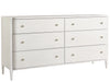 A clean Alabaster finish encases the Chelsea Dresser, which includes six drawers that are accentuated with champagne, hexagonal hardware for a simple and streamlined look.
