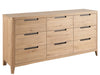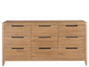 The Walker Drawer Dresser boasts nine drawers and is finished in an organic Natural Oak, offering a versatile and dynamic piece that's as functional as it is aesthetically pleasing. Its natural finish highlights the inherent beauty of the wood, making this dresser a timeless addition to any bedroom seeking a blend of practicality and natural elegance.