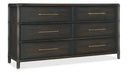 Inspired by tropical getaways, the Retreat Pole Rattan Dresser is a blend of natural materials in a laid-back, versatile design. Crafted of Oak and Maple Veneers with Rope accents, the dresser is finished in Sand, transparent by design to reveal the unique grain patterns in the wood veneer. Offering six self-closing drawers, the top left drawer has a removable felt liner and the top right drawer has a removable felt liner. The bottom two drawers are cedar-lined. The textured, pewter-colored bar pulls add a look of natural elegance.