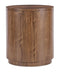 The Eleana Round Nightstand features a beautiful starburst veneer top, touch-latch wood doors, and a pull-out tray for added versatility. Finished in Light Caramel walnut veneers with Sunlit Bronze hardware, this piece is perfect for adding warmth and luxury to any bedroom.