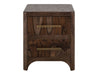 2 Drawer, Nightstand. Transform your space with this modern bedroom set. Crafted from engineered teak and sustainable mango wood, this collection combines lasting durability with natural beauty. The rich brown multi-step lacquer finish adds warmth and depth to the furniture. The Praga Nightstand has two spacious drawers for ample storage. The aged golden handles add a touch of sophistication, while its short, sturdy legs provide balance and stability, making it a versatile addition to any space.