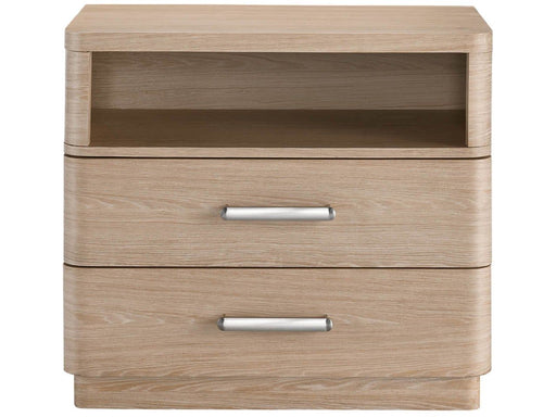 Universal FurnitureBring a natural touch to bedsides with the Nomad Nightstand, a fresh oak-finished piece built with two drawers, an open-air shelving display and mo...