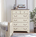 In a two-tone finish with the deep, dark Molasses on the case and the warm Honey on the top and on the drawer interiors, the Americana Dresser is a classic, charming design with a nostalgic flair. The six self-closing drawers have top drawers with black removable felt liner and a bottom drawer that is cedar-lined. Metal alloy pulls in an antique bronze finish.
