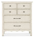In a classic, charming design with a nostalgic flair, the Americana Six-Drawer Chest is crafted of Oak Veneers with a Solid-Wood Edge Top, a scalloped-shape base and finished in the deep finish. The drawers are self-closing and finished on the interior in the warm color. The top drawers have a removable felt liner and the bottom drawer is cedar-lined. Metal alloy knob pulls have an antique bronze finish.