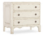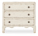 In a classic, charming design with a nostalgic flair, the Americana Three-Drawer Nightstand is crafted of Oak Veneers with a Solid-Wood Edge Top, a scalloped-shape base and finished in the deep tone. There are 3 self-closing drawers, with the interiors finished in the warm color. Metal alloy knob pulls in an antique finish.