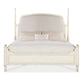 In a stunning reimagination of the classic Southern 4-poster bed, the inviting Americana Upholstered Bed has an upholstered fabric headboard with welt trim, in a color contrasting with the deep finish over Cathedral Oak Veneers. There are carved accents on the posts and scroll work on the upper sides of the footboard. The footboard comes with caps for a low-post option.
