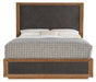 Inspired by the grandeur of wide open spaces in the American wilderness, the Big Sky California Panel Bed is a statement piece for modern rustic design. The bed boldly contrasts a Vintage Natural finish over Hickory Veneers on the borders and side rails with a crosshatch texture on the headboard and footboard in a Furrowed Bark finish. Includes headboard, footboard and rails.