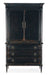 Stunning and stylish and brimming with storage, the Charleston Jewelry Armoire has a stately but slim profile with a crown molding top accented by fretwork and shaped legs with metal ferrules. Crafted of Cherry Veneers, it is finished in the vibrant Black Cherry patina with an heirloom quality. The two front doors have piano hinges with magnetic catches, with two adjustable shelves behind, along with a self-closing drawer with a removable felt liner and removable felt jewelry tray. The two side doors each have a mirror, push latch and felt-lined interior and twelve hooks. The 3 bottom drawers have self-closing guides and a cherry color interior. The bottom drawer is cedar-lined. The ring hardware has an antique pewter color.