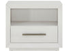 The Shoreline Nightstand combines a drawer with an open shelf space, all in a fresh Shoreline finish with contemporary hardware and LED lighting. This nightstand includes integrated electrical outlets with USB connections that enhance functionality while maintaining the collection's serene coastal style.