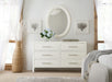 Inspired by casual waterfront living, the oval-shaped Amelia Mirror has a textured finish available in a whitewashed or weathered gray finish and a beveled edge for a stylish simplicity.