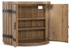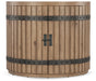 Designed in a half-circle shape inspired by a wine barrel, the Vineyard Row Demilune Nightstand is crafted of Pecky Hickory Veneers finished in the light and airy Sonoma and accented by rustic hammered metal and interlocking pulls. The two doors have soft-close hinges and magnetic door catches. Two adjustable wood shelves.