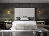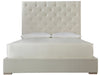 The glamorous Brando Bed is defined by an oversized, button tufted headboard upholstered in a performance fabric