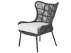 The shapely Hatteras Lounge Chair features a wingback-inspired frame wrapped in dark gray woven rope, creating a welcoming accent piece to suit a variety of design styles.