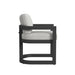 Deco meets contemporary with Sunset West’s Malibu Collection. Featuring a structural design with modern proportions, the Malibu Dining Chair includes a split-back frame and curved tuxedo arm. Tailored cushions mimic the sleek frame design and provide supreme comfort.