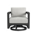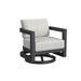 Deco meets contemporary with Sunset West’s Malibu Collection. Featuring a structural design with modern proportions, the Malibu Swivel Club features a split-back frame and curved tuxedo arm. Tailored cushions mimic the sleek frame design and provide supreme comfort.