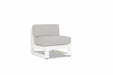 The Newport Armless Club Chair blends modern and industrial sensibility into one striking design. Informed by mid-century design elements, the Newport features a low back and smart, linear frame. Crafted in powder coated aluminum in a White Satin finish. Fully welded, scratch-resistant powder-coated aluminum frame Weather resistant, high-resiliency foam cushions Stocked in Premium Sunbrella fabric in Cast Silver Adjustable Non-Marring Feet Commercial Quality Construction Custom Cushions available in approx. 4 weeks. Newport is part of the Frost color story, and coordinates well with Miami, Naples, and Carrara pieces from the Bazaar.