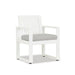 The Newport Dining Chair blends modern and industrial sensibly into one striking design, featuring a wide slat back and linear frame, crafted in powder coated aluminum with a Satin White finish.