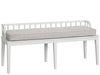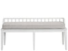 The genteel Finn Dining Bench features a plush upholstered body and white-hued tapered legs, offering both comfort and function.