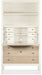 Contrasting a serene Almond White finish with Maple and Figured Maple Veneers on the drop-down front and drawer fronts, the Hera Hub gets you organized and keeps clutter out of sight. Perfect for the kitchen, bedroom, loft or living space, it has one adjustable wood shelf in the top section and one fixed wood shelf in the top section. The drop-front writing surface opens to reveal 6 small drawers and one adjustable wood shelf. There’s a cutout in the back panel for wire management and two bottom drawers underneath the drop-front area. The top drawer has a cream-colored removable felt-lined tray, and the bottom drawer has a lock and two compartments. The right compartment has hanging file storage. The left compartment has a removable tray.