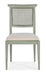 Inspired by the tropical craftsmanship of the West Indies and the woven cane accents of classic British and Dutch Colonial design, the Charleston Upholstered Seat Side Chair has an oyster-colored fabric seat and a cane back. The color is the result of the natural patina formed when copper is exposed to air and seawater. This weathered green color represents years of Low Country heat and moisture degrading the pure pigment color, creating a truly venerable aesthetic.