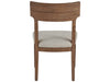 The Wood Back Side Chair is a stylish blend of modern and rustic design. Its sleek wooden frame and comfortable fabric seat offer a perfect balance of form and function. This chair is a versatile piece that can complement a variety of interior styles.