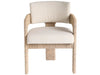 The Abaca Arm Chair is wrapped in natural abaca fiber, combining organic texture with comfortable upholstered seating in Nomad Snow fabric. This dining arm chair with 31-inch height and 19-inch seat height provides perfect dining comfort while bringing natural materials and coastal warmth to your dining space.