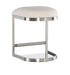 Cozy chic meets sleek sophistication with the Modern Mood Counter Stool in a backless design. The tactile and textural Boucle fabric in Inverness Natural on the U-shaped upholstered seat contrasts with a brushed metal base, stretcher and foot rail in a warm pewter finish. Fully upholstered seat.