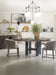 The round dining table in 72-inch and 60-inch sizes combine the Mountain Modern finish on top with a plated black nickel base.
