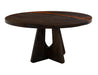 The Raramuri round dining table is a high-quality addition to any dining room, crafted from sustainable mango wood and featuring a unique finish. The tabletop is enhanced with epoxy resin infused with copper mineral flakes, which adds both durability and visual interest. The dining table set highlights the natural beauty and tonal variations of mango wood. The pedestal base with a geometric design is made from sturdy wood, providing a stable and long-lasting foundation, making it ideal for everyday use.