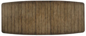 This quintessential farmhouse table is equally at home in coastal, mountain, modern and updated traditional settings. Crafted of Pecan Veneers with a Solid Wood edge top, the table is finished in Cliffside, a rich dynamic brown finish with light burnishing on the edges. Featuring one 18-inch leaf, the table extends to 100 inches long with the leaf in place to accommodate up to 2 arm chairs and 8 side chairs. Without the leaf, it accommodates up to 2 arm chairs and 6 side chairs.