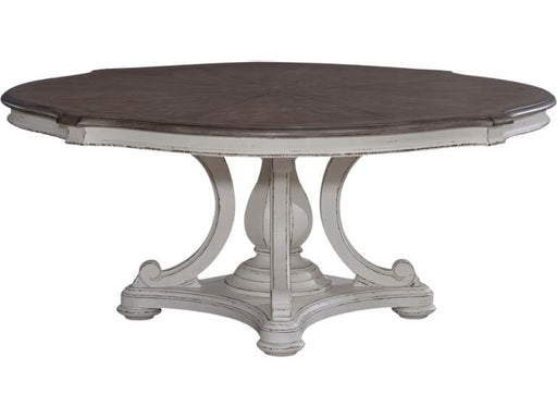 Liberty FurnitureGather the family together for dinner around the Magnolia Manor pedestal table. A 42" round is perfect for small spaces or add in the 18" leaf to e...
