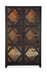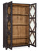 Vintage and rustic, the Big Sky Cabinet has a bold and simple design featuring seeded antique glass doors with a diamond-and-cross-beam pattern decorative overlay. The Charred Timber finish on the exterior contrasts with a Vintage Natural finish on the interior that reveals the authentic knots and wood grain of the Pecky Hickory Veneers. The doors have soft-close hinges, and behind them are two adjustable wood-framed glass shelves with a plate groove and one fixed wood-framed glass shelf in the center with a plate groove. The two lights have a 3-intensity touch switch on the right pack panel.