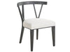 The Basalt Side Chair offers a refined seating solution with its elegantly curved back and upholstered seat. Finished in a striking Basalt, its clean lines and minimalist design bring a touch of understated sophistication to any dining or living space. The chair's comfortable form and natural wood finish create a harmonious blend of style and practicality.