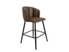 Upholstered Seat & Metal Frame Bar Stool. The Tamesis stool collection combines elegance with comfort. It features a durable metal base and faux leather upholstery in brown. Its channeled backrest enhances style and ergonomics, providing excellent support for prolonged seating. The sophisticated design pairs beautifully with modern and industrial-inspired interiors, making it a versatile addition to any bar, kitchen, or lounge area.