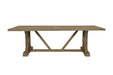 Sunset West's Coastal Teak Dining Table is a beautifully contemporary take on a classic. A slat table top sits on a beautiful trestle base. Our unique multi-step finish gives the natural wood a warm grey color, complementing our other collections for the perfectly curated coastal design.Constructed of 100% solid teak wood, these excellently engineered pieces develop a lovely patina over time. Their natural grooves and subtle rustic features lend a unique look and character to each item no two pieces are exactly alike. Teak wood, known for its durability and natural moisture-resistant oils, is an excellent choice for outdoor furniture that will stand the test of time. 94 x 40" Rectangular Dining Table