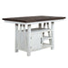 Weathered, rustic surfaces emphasize the simple beauty of everyday things. Farmhouse features a weathered white finish that looks better over time. A picnic style table generously styled to accommodate family and friends has two end leaves (18") that expand the table to 98". The classic Windsor chair known for its comfort, style, and value has simple turned legs and back spindles. Use the server in the dining room, foyer, or as a media console in the living room. This multi functional piece is 55" wide with 2 storage drawers and 2 open bottom shelves, one that accommodates wine storage. The open style server is accented with back diagonal slats to continue the farmhouse design. Add two of the leaning shelves on either side of the server to make a storage wall. The leaning shelves features 5 graduated shelves.