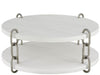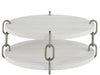 The Shoreline Cocktail Table features a round design with a distinctive chain-link metal connection between its two tiers. Casters add functionality while the linked design creates visual interest for your coastal living space.