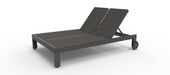 The Redondo Sling Double Chaise features an armless linear frame and sling seat. Crafted in powder-coated aluminum with a hand-brushed Slate finish, this chaise offers 5 adjustable positions for customized lounging for two.
